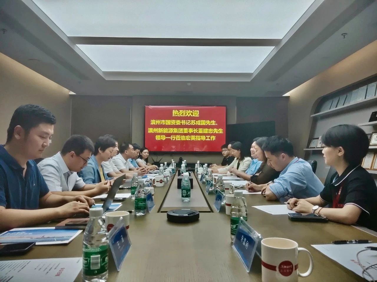 9月2日,滨州市国资委党委书记苏成国一行莅临易倍体育考察,易倍体育董事长张化宏热情接待,并就双方在储能项目上的合作进行了深入交流。滨州新能源集团党委书记、董事长董建忠,党委副书记、副董事长、总经理巩萍也一同参与了此次考察。