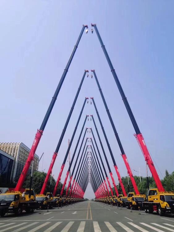 三一SAC6000全地面起重机、STC550T汽车起重机、SPC80T汽车起重机,全球首次使用600吨级起重机完成此项挑战!现场嘉宾纷纷举起手机记录这一震撼人心的时刻!
