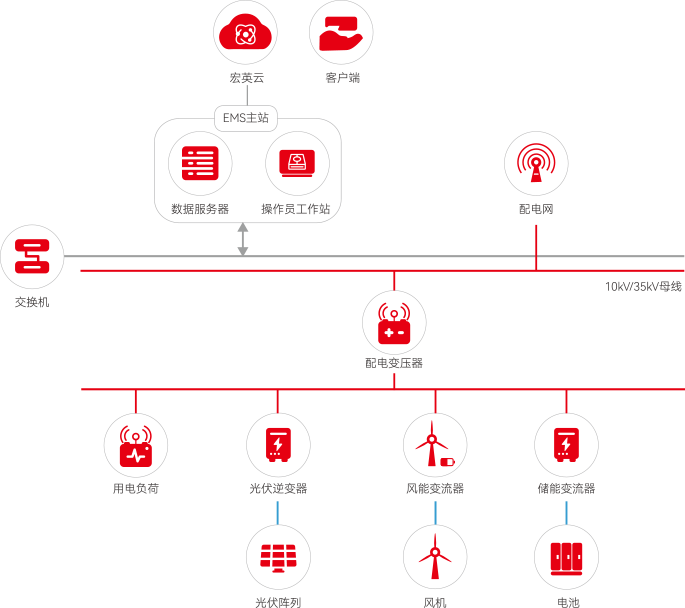 易倍体育风光储一体化解决方案是融合物联网技术,将风能、太阳能、储能以及EMS能源管理系统结合起来,实现风、光、储多能互补协同运行,能源精准调配减少弃风弃光,提高能源综合效率,同时通过调峰、调频和调相等功能,有效抑制电网波动,提升电网稳定性、可靠性。