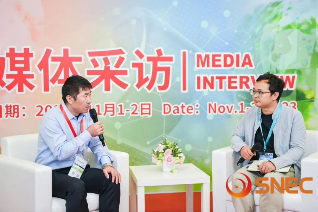 ▲易倍体育新能源技术总监赵展展先生接受SNEC媒体采访